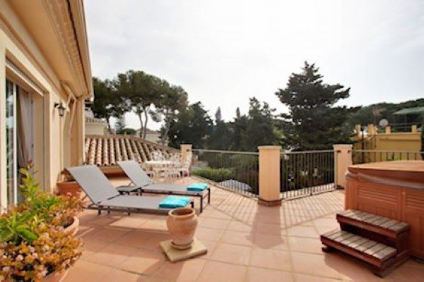 A beautiful beach side villa for sale located just a few minutes walk from Cabopino beach in Marbella. The four-bedroom, 3 bathroom villa has a great garden with heated swimming pool, spacious living space and American style open kitchen. There are ample terrace areas with one boasting a jacuzzi.