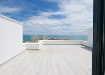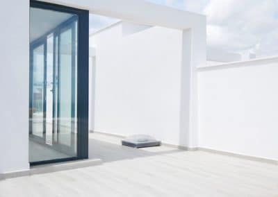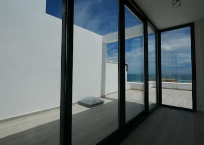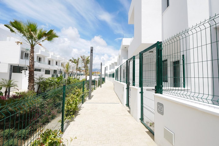 Dette komplekset er nesten utsolgt, men de offisielle 2021-prisene i dette komplekset av hus starter fra € 470000. Vi har NÅ en kanselleringseiendom som nettopp har kommet tilbake på markedet til den gamle opprinnelige prisen fra € 380.000 fra 2019. Dette representerer stor verdi. Dette hjørnehuset med tre soverom har tre nivåer med mange terrasser, hager og et flott solarium med havutsikt.
